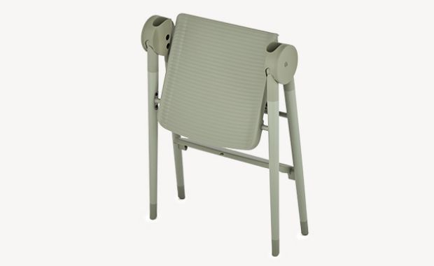 Компактный механизм складывания обеспечивает удобное хранение — ножки стульчика легко складываются, экономя место.