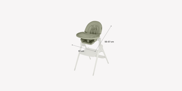 Мягкий чехол стульчика для кормления легко снимается благодаря магнитам, что делает его удобным для чистки.