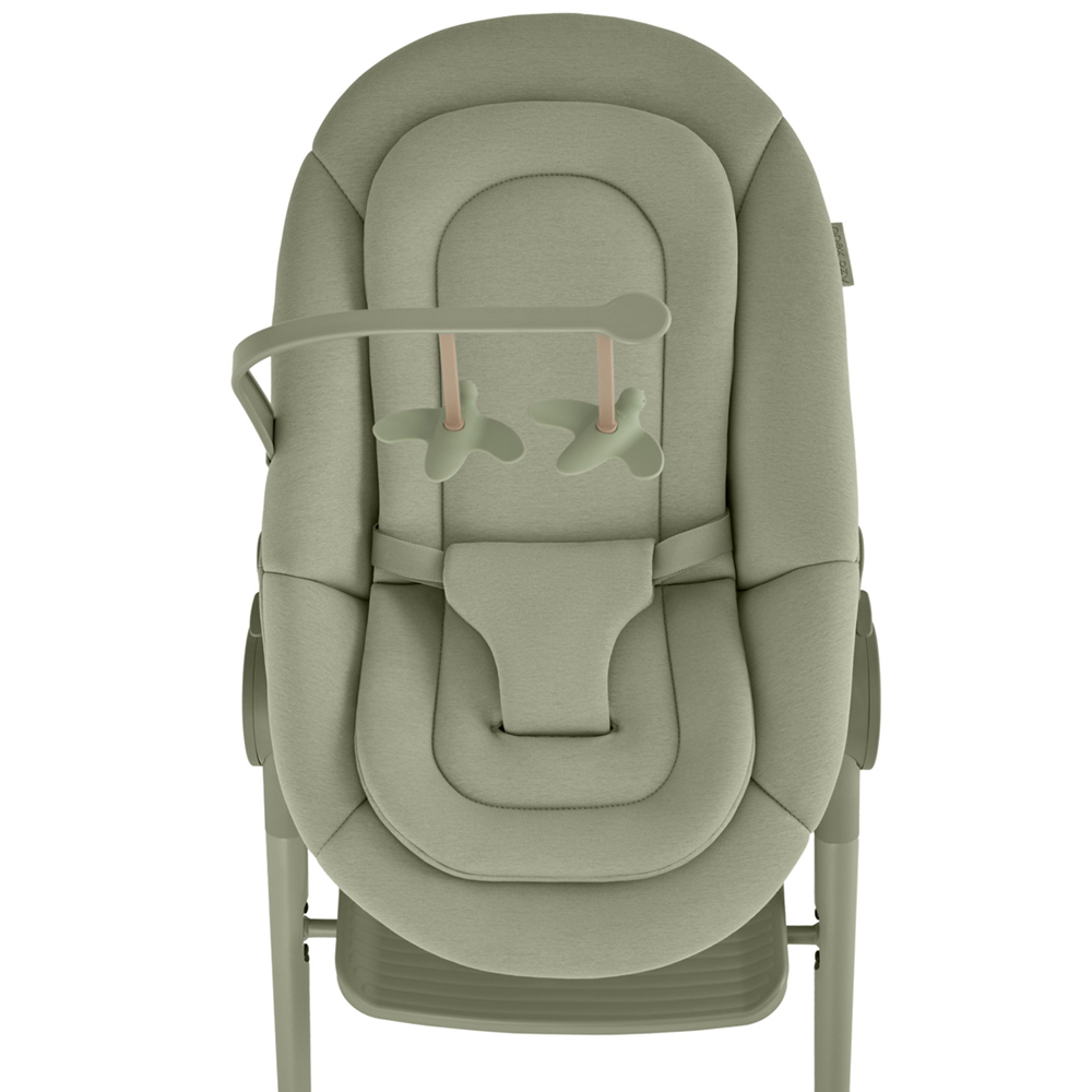 Сиденье для новорождённых разработано для поддержки раннего развития и оснащено игрушками разной формы для стимуляции зрения с первых недель жизни.