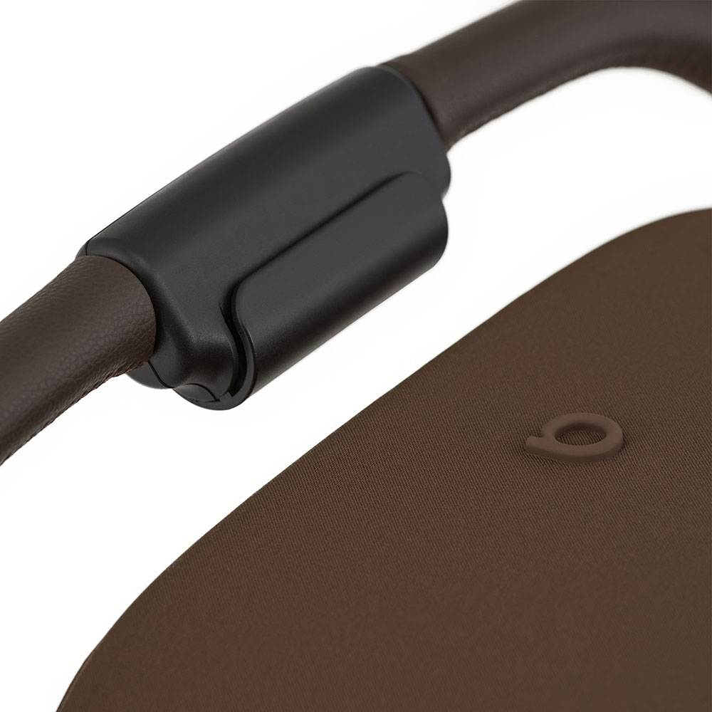Кожаный бампер коляски можно полностью снять одной рукой, поочередно отсоединив его с каждой стороны.